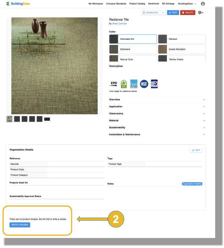 All users have the opportunity to rate products on a 1 to 5 Star scale (5 being Best and 1 being Worst) and write reviews with more detailed feedback. All ratings and reviews default to anonymous in public view of the catalog, but are attributed internally, within your organization, so people know who to ask if they have further questions. Ratings and Reviews are HIGHLY encouraged because there are no other places to give manufacturers feedback directly. Comments can address product attributes or certifications (like the desire for a product to have a 3rd party certification to comply with client requirements) or performance, installation, aesthetics, durability – or anything else. Manufacturers always have the ability to respond from their dashboard.